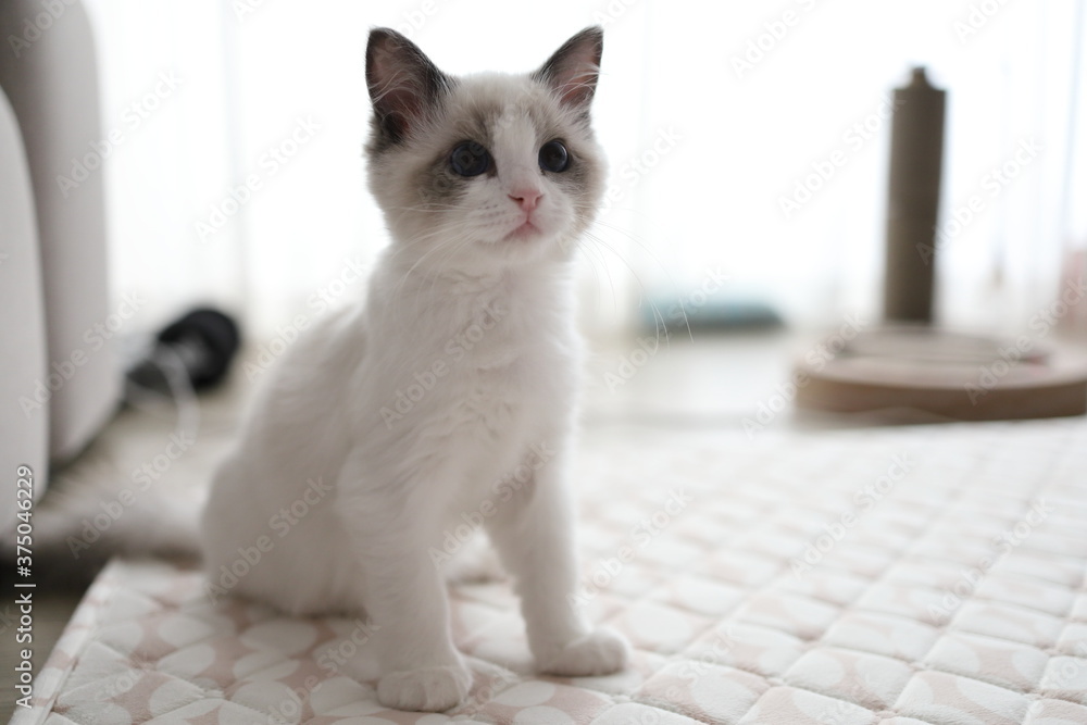 푸른눈을 가진 귀여운 랙돌 새끼 고양이