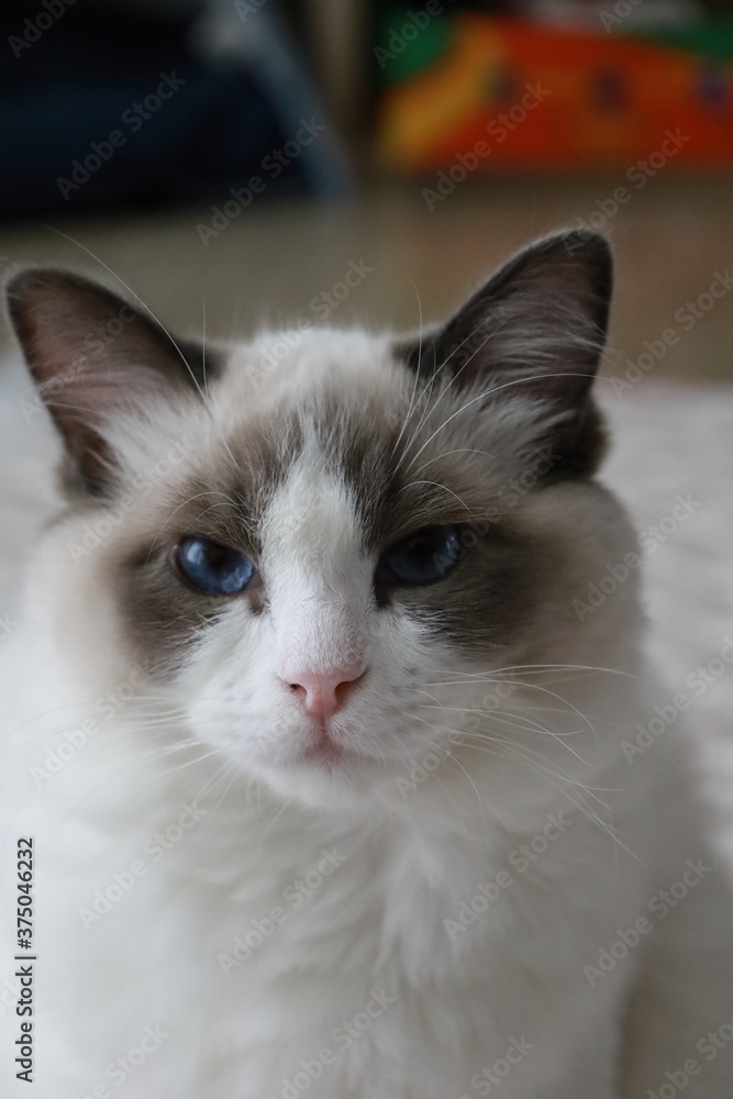 푸른눈을 가진 귀여운 랙돌 새끼 고양이