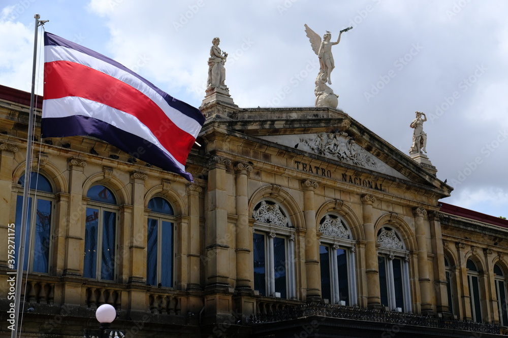 Costa Rica San Jose - National Theater of Costa Rica - Teatro Nacional de Costa Rica and national flag