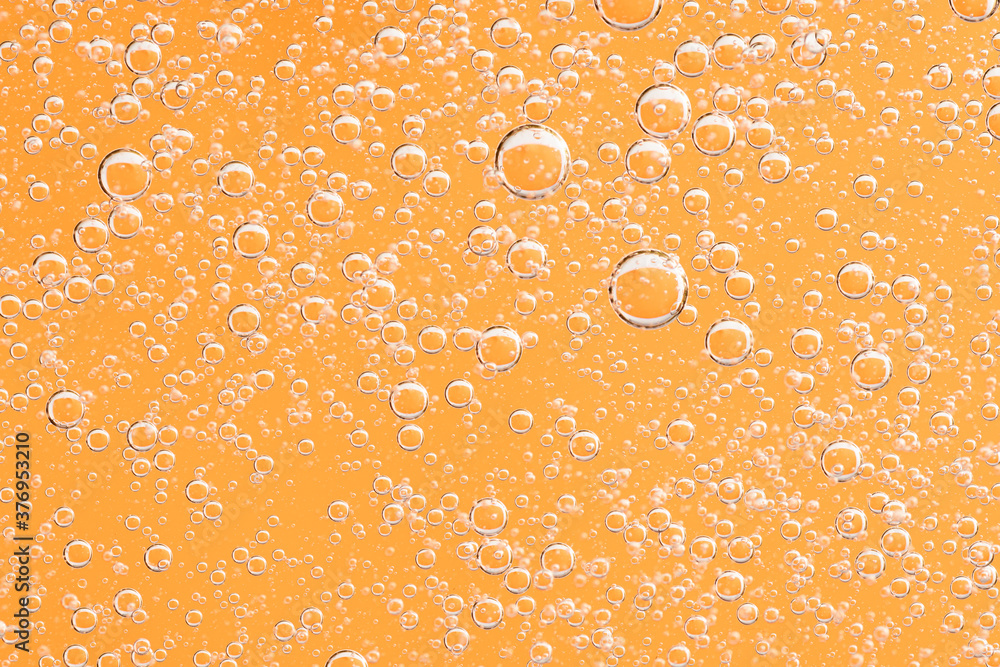 Yellow and orange bubbles, drops of oil in water, olive oil for cooking background.
