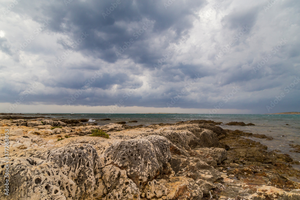 Dramatic storm scenery over the Adriatic Sea, with dark cumulus rain clouds