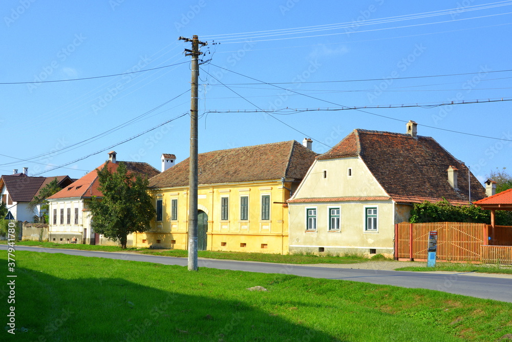 Typical rural landscape and peasant houses in the village Cincsor, Kleinschenk, Transylvania, Romania. The settlement was founded by the Saxon colonists in the middle of the 12th century