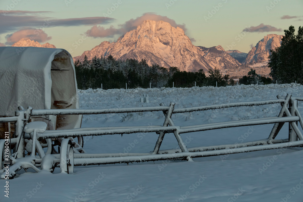 Mt Moran at sunrise after snowstorm; Jackson Hole; Wyoming