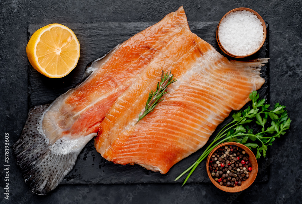 cold smoked salmon on a stone background