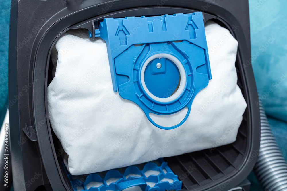 New air filter in a modern vacuum cleaner. replacement, close-up installation