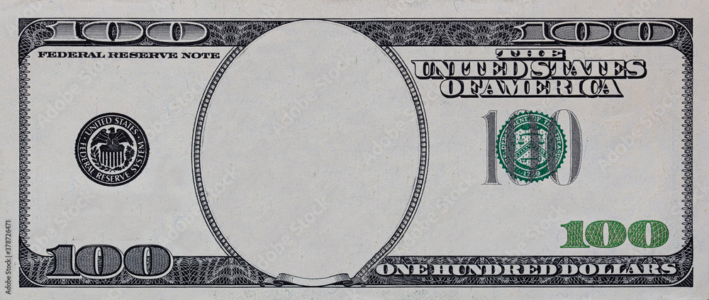 U.S. 100 dollar border with empty middle area