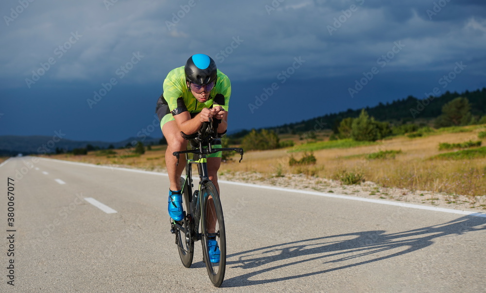 triathlon athlete riding bike