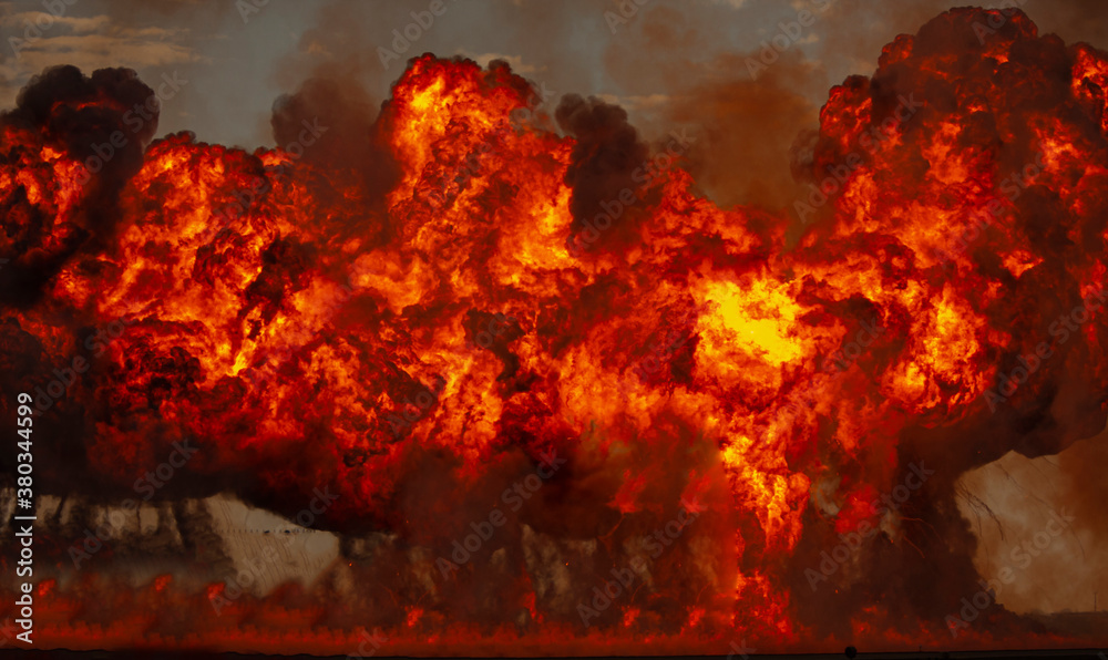 Large fire ball with smoke from munitions explosion