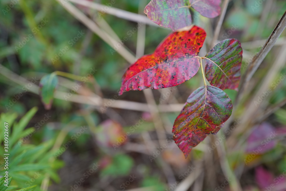 Sept 25, 2020 Poison Ivy changing colour during September at Fort Tilden Beach, Queens, New York City, USA.
