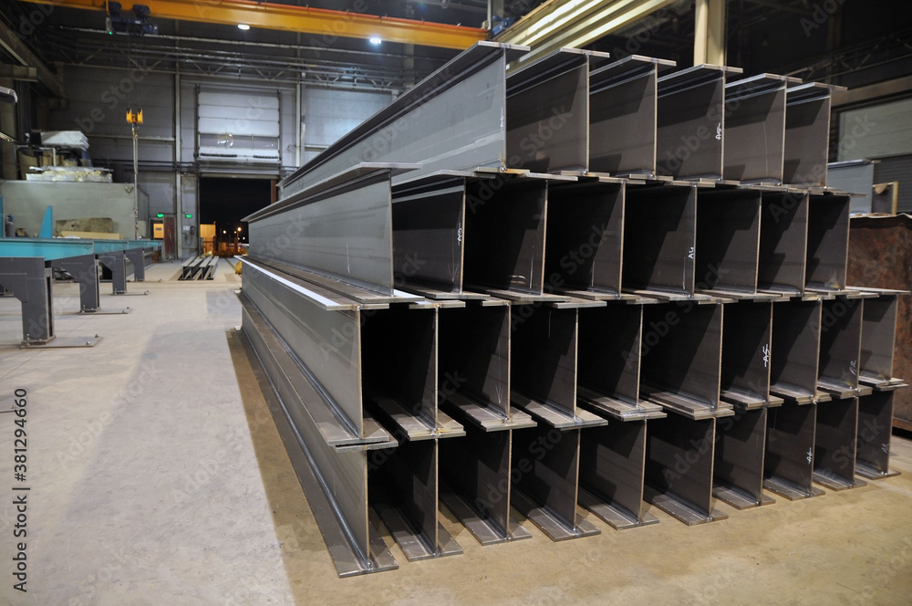 Manufacturing of a welded I-beam on an automatic welding line. Products of the plant for the production of metal structures.
