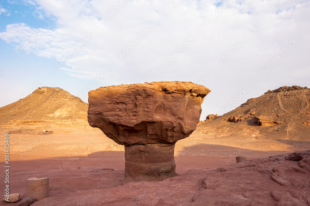 Sculpture of a Muchroom made by nature in the Arava Valley near Eilat. Timna Park. Israel.