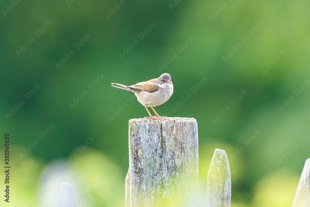 Common Whitethroat (Sylvia communis) male on a fence post, taken in London
