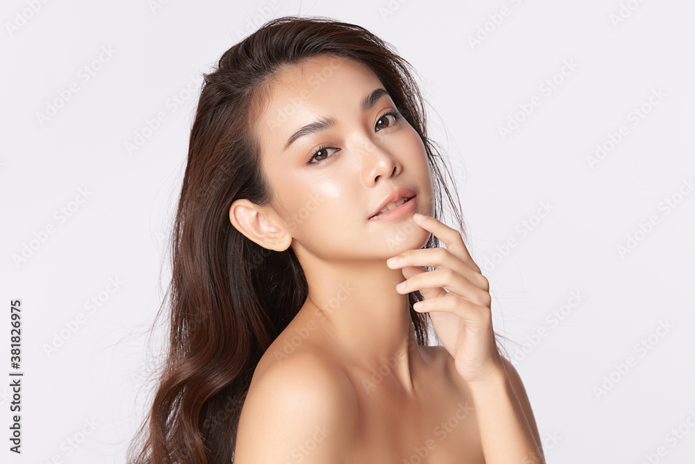 Beautiful young asian woman with clean fresh skin on white background, Face care, Facial treatment, Cosmetology, beauty and spa, Asian women portrait