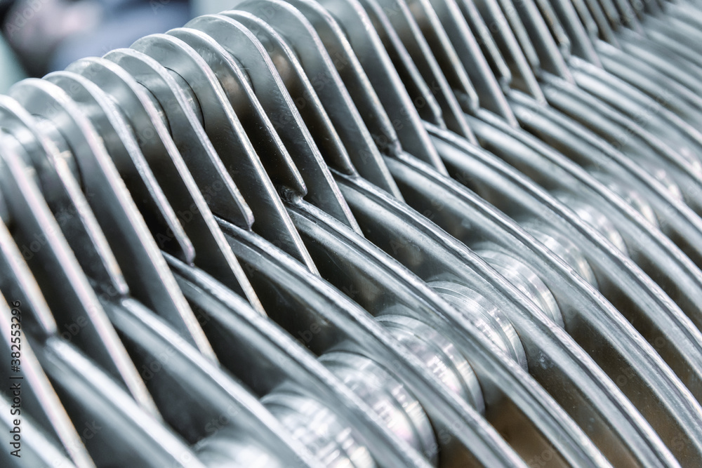Plate heat exchanger. Fragment of equipment, closeup photo