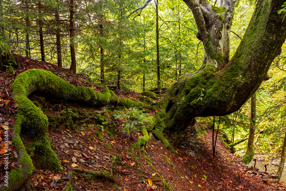 Old beech forest. Beech virgin forest in the Carpathians. Old beech virgin forest in the reserve.unique beech virgin forests in the Carpathians are listed in the UNESCO World Heritage Site