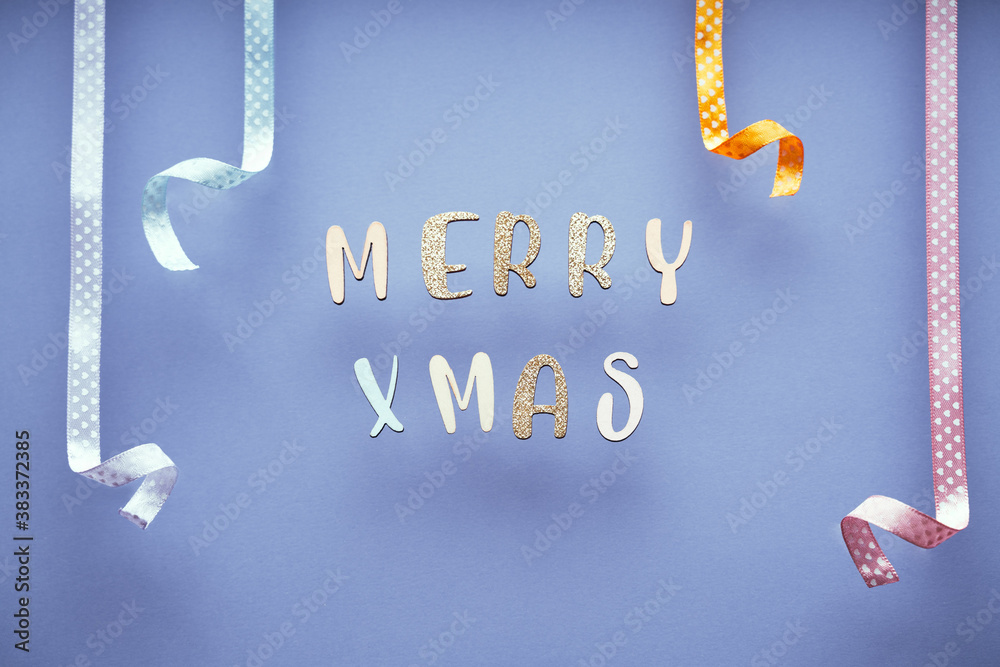 Merry Christmas minimal pastel greeting card , frame, banner with holidays decorations.