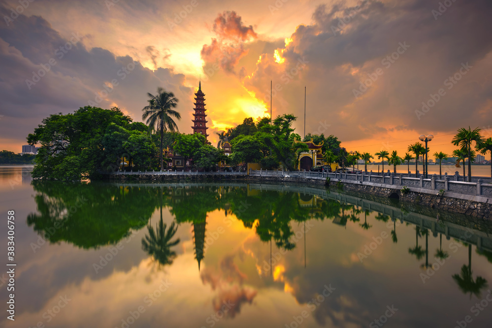 Sunset on Tran Quoc ancient pagoda in Ha Noi city, Vietnam.