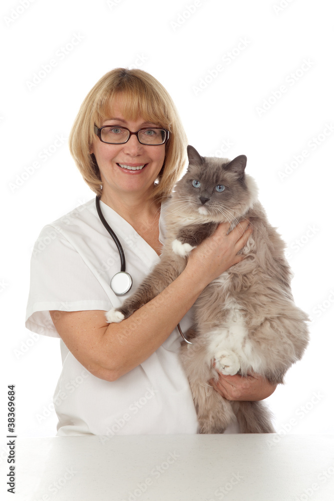 Veterinarian with cat