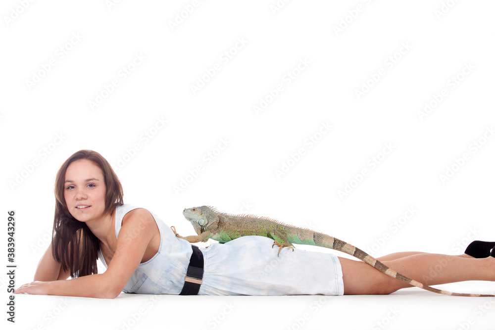 Girl with her iguana