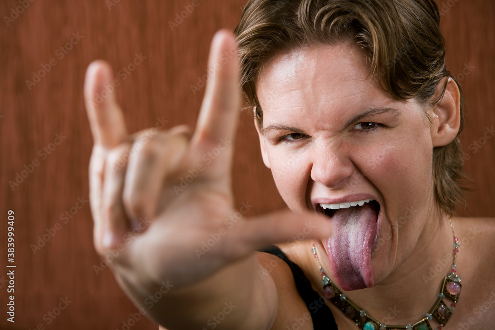 Pretty Woman Making Bull Horns