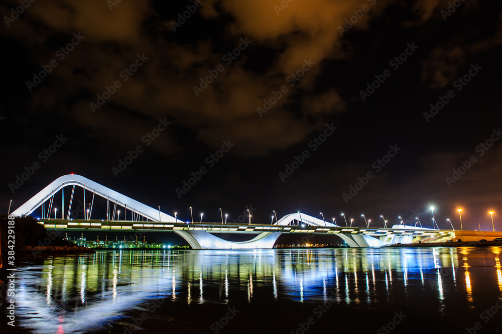 ABU DHABI, UAE - OCTOBER 23: on Oct 23, 2017 Al Maktum bridge in Abu Dhabi, United Arab Emirates.