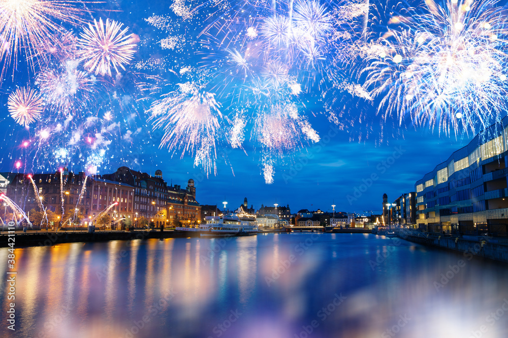 Fireworks in Malmo, Sweden at new years eve.