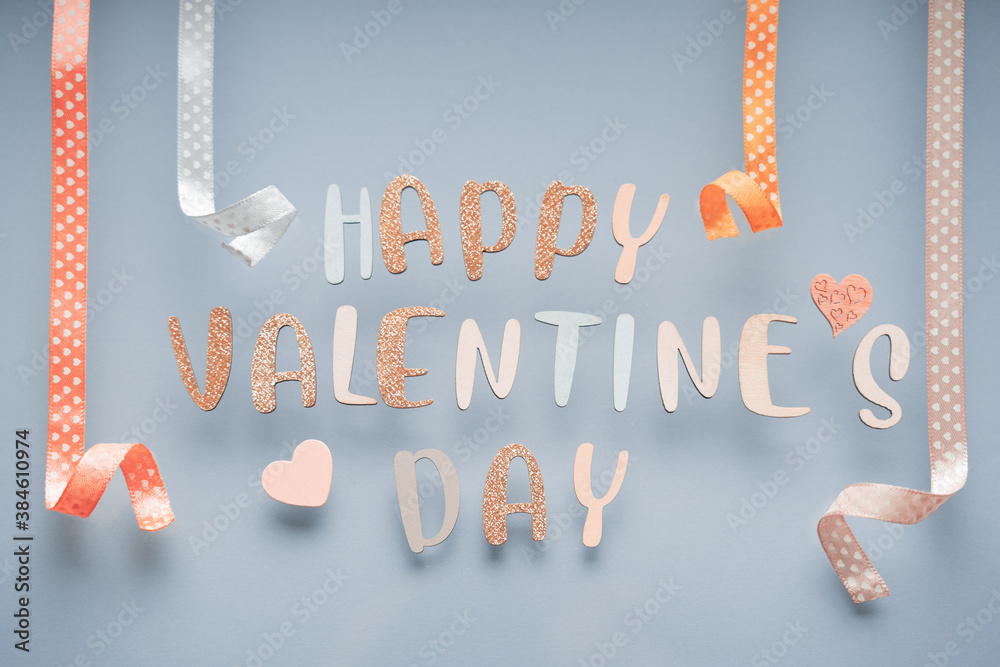 Happy Valentines Day minimal pastel greeting card, frame, banner.