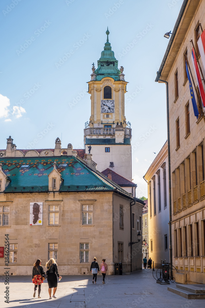 Old Town Hall in the centre of Bratislava. One of the oldest historical buildings. Popular tourist spot, houses a City Museum. Stara Radnica at Hlavne namestie