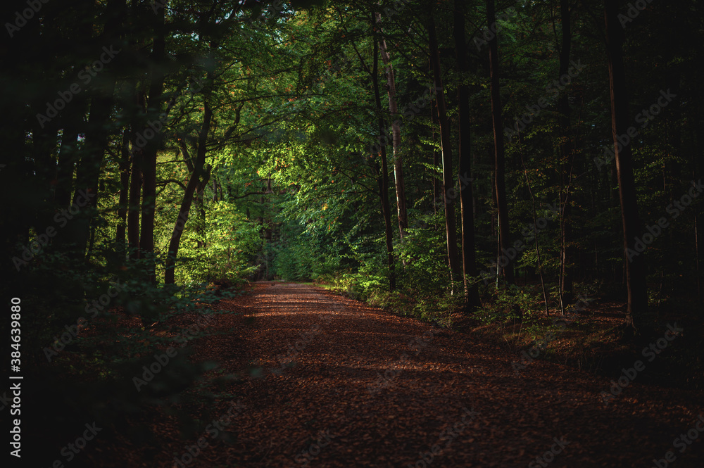 Weg im Wald am späten Nachmittag in Nordeuropa
