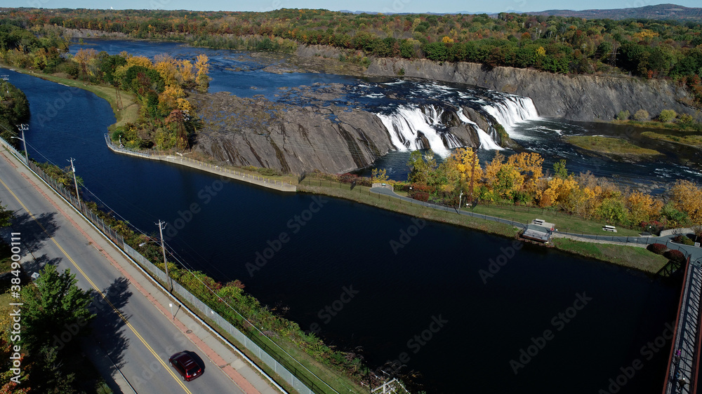 Aerial view of Cohoes Falls in Cohoes, New York