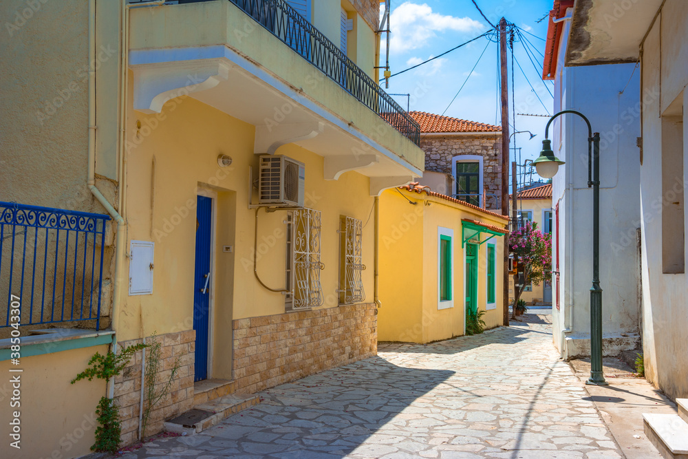 Streets of famous picturesque village Limni Evias on Euboea island, Greece.