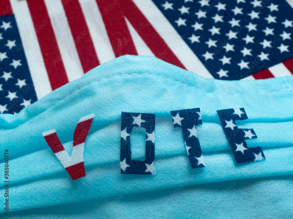 Vote background. Elections in the United States. Coronavirus epidemic. Protective mask