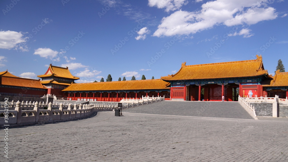 Forbidden City under blue sky and white clouds
