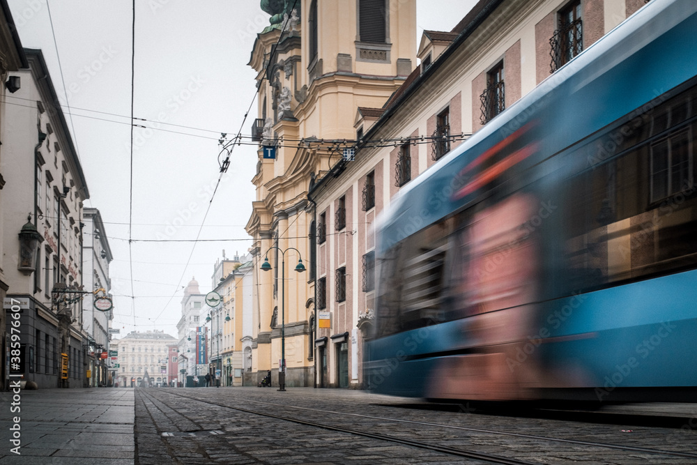 Straßenbahn in der Stadt, Bewegungsunschärfe