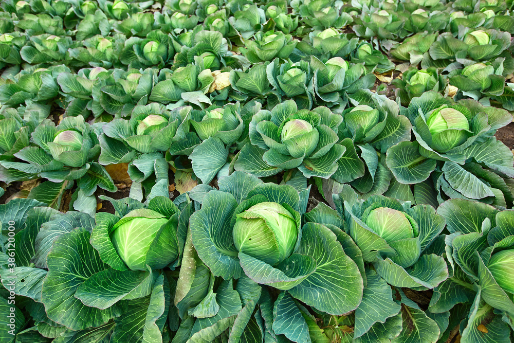 White cabbage. Close-up of a head of white cabbage growing in a farmer's field