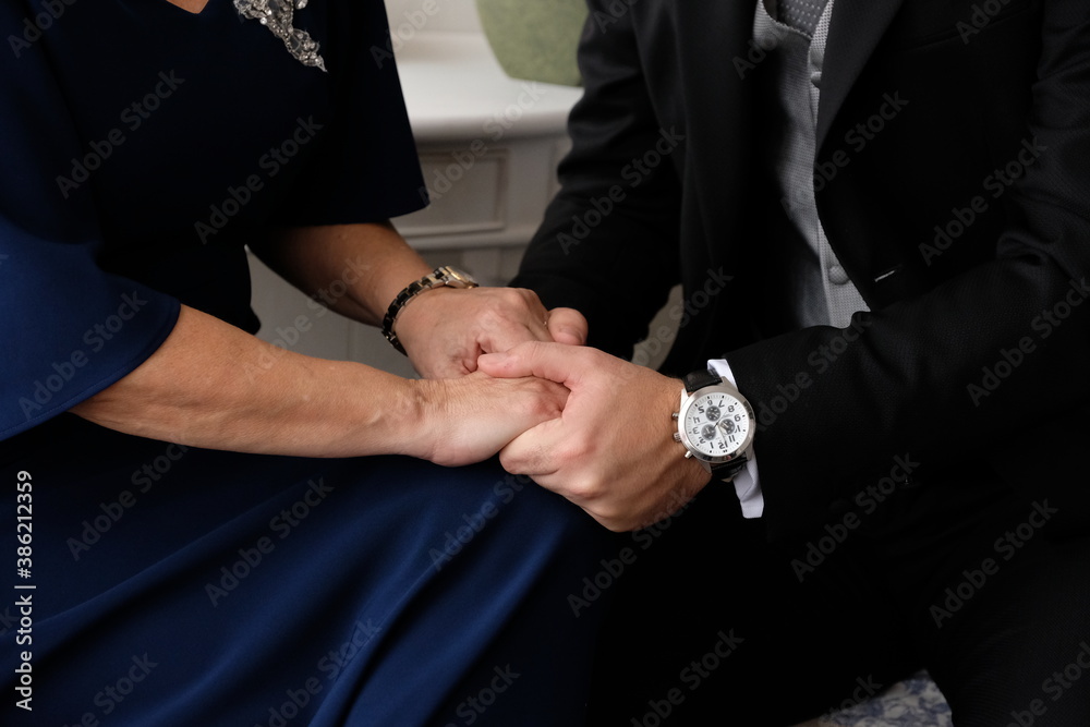 bride and groom holding hands