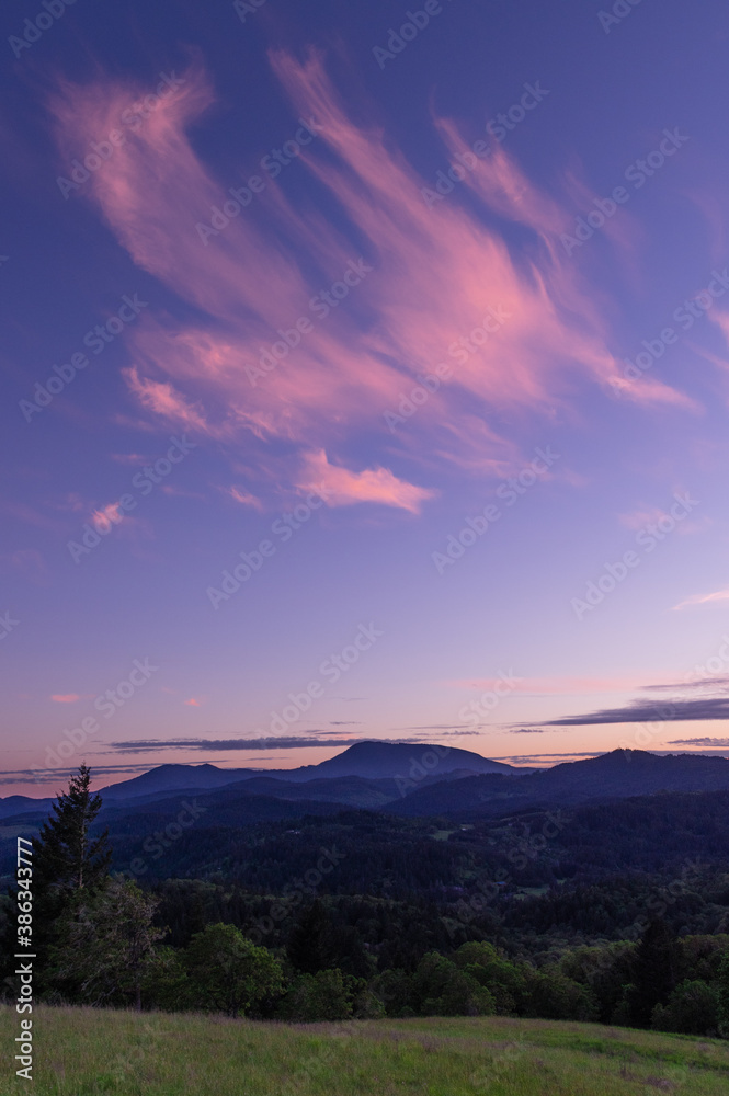 Sunset over Marys Peak as seen from Fitton Green Natural Area, Corvallis, Oregon.