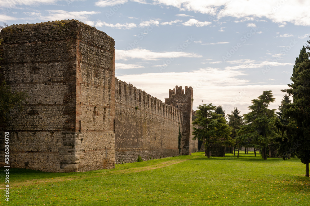 Medieval Town with a Castle and surrounding city wall of Soave in the province of Verona, Italy in autumn