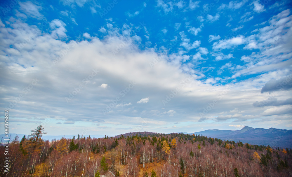 Ural mountains and ridges. Taganay ridge, a view from the city of Zlatoust, in the Chelyabinsk region