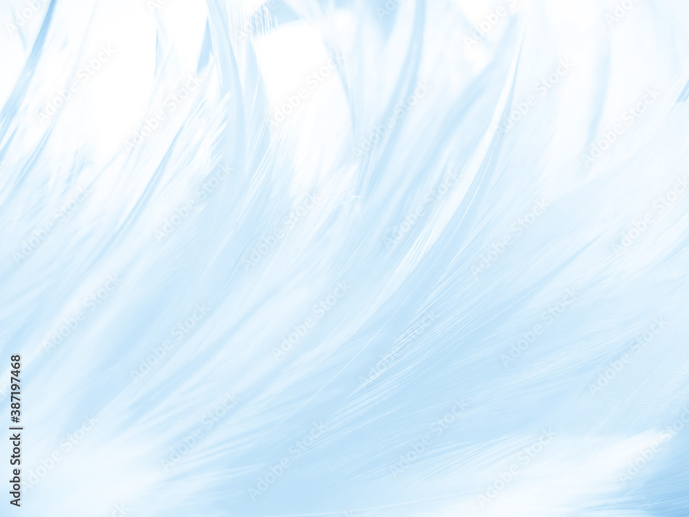 Beautiful abstract blue feathers on white background and soft white feather texture on blue pattern and blue background, feather background, blue theme valentines day