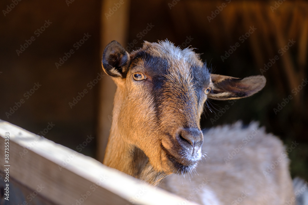 brown goat in barn. goat on the farm