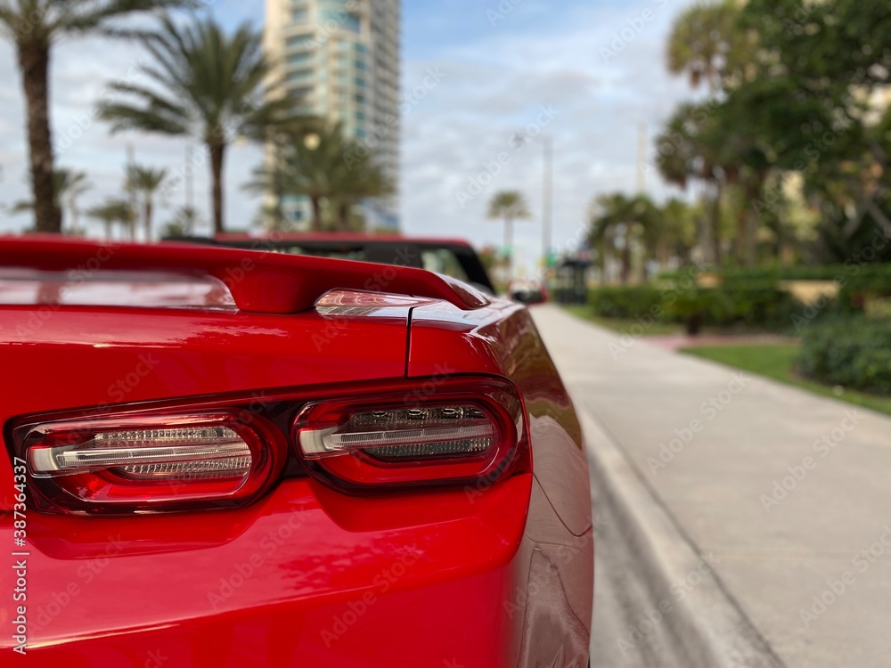 red car on the road