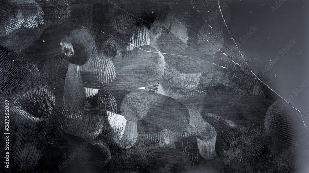 dirty smartphone display device surface with smudgy fingerprints, dust, scratches and broken glass.