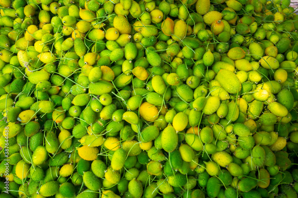 Fresh and green spiny gourd vegetables ready for sale in the market.