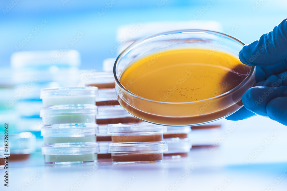 Petri dishes in the microbiology laboratory of a medical clinic