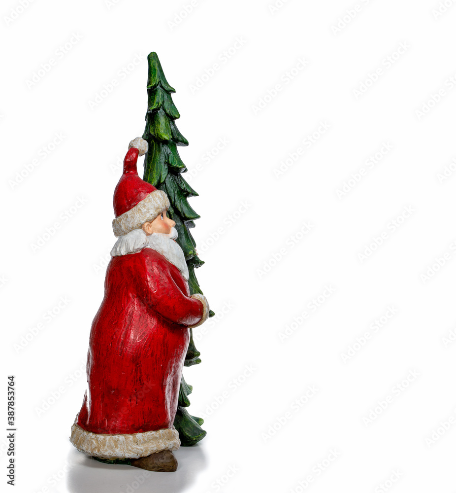 Ceramic Santa Claus with Christmas tree in his arms isolated