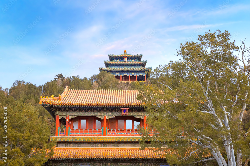 Jingshan park at the north of the Forbidden City in Beijing, China