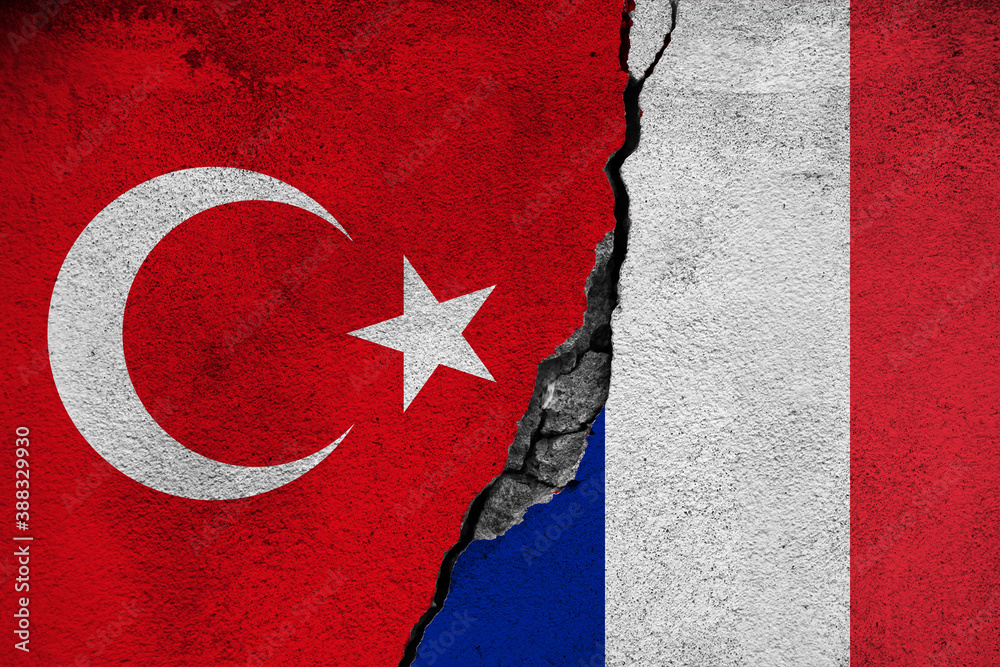Concept of the Conflict between Turkey and Trance with painted Flags on a Wall and a Crack between them