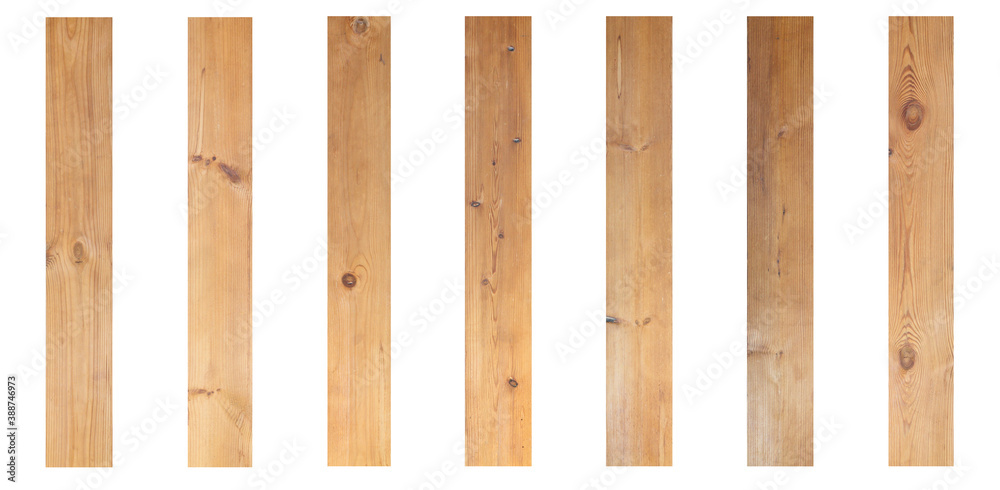 Rustic plank of pine wood isolated on white background with clipping path for for vintage design purpose