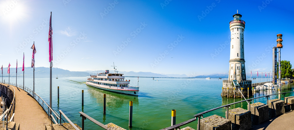 famous harbor with sailboats at the historic island of Lindau am Bodensee - Germany